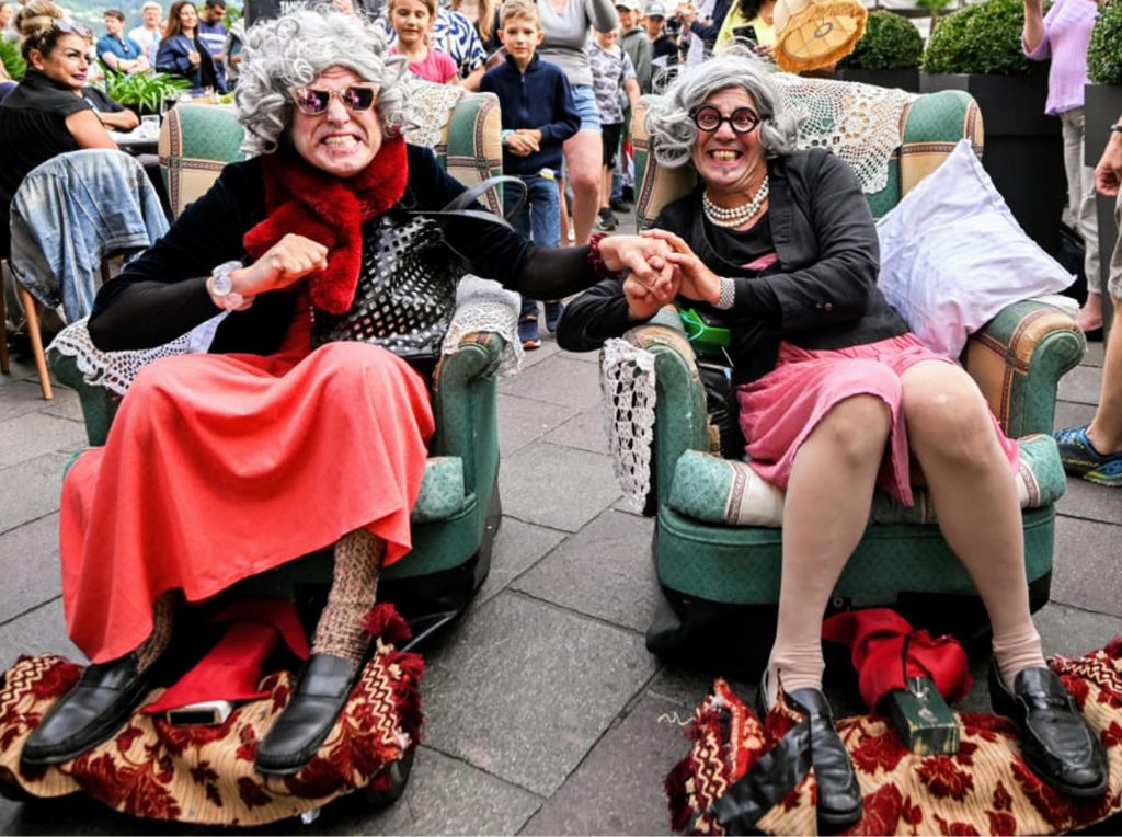 Nonas. Un abuelo y una abuela deambulan de manera curiosa, acaso insolente y excéntrica. Salen al encuentro del público a divertirse como dos “niños” y a reírse de las cosas de la vida, porque para ellos la vida es bella… Sobre todo, lejos de la rutina diaria de la residencia de ancianos…