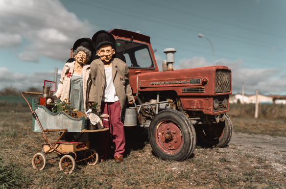 Transfiguro. Un viaje poético sin palabras a través de la imaginación, donde el propio cuerpo de la artista se transforma en nuevos y encantadores personajes. Una mirada irónica hacia el mundo teñida de vitalidad que conduce al espectador al horizonte infinito de la fantasía.