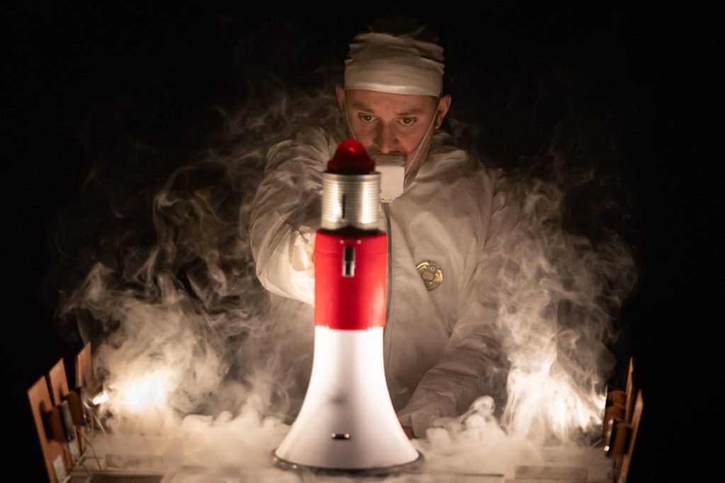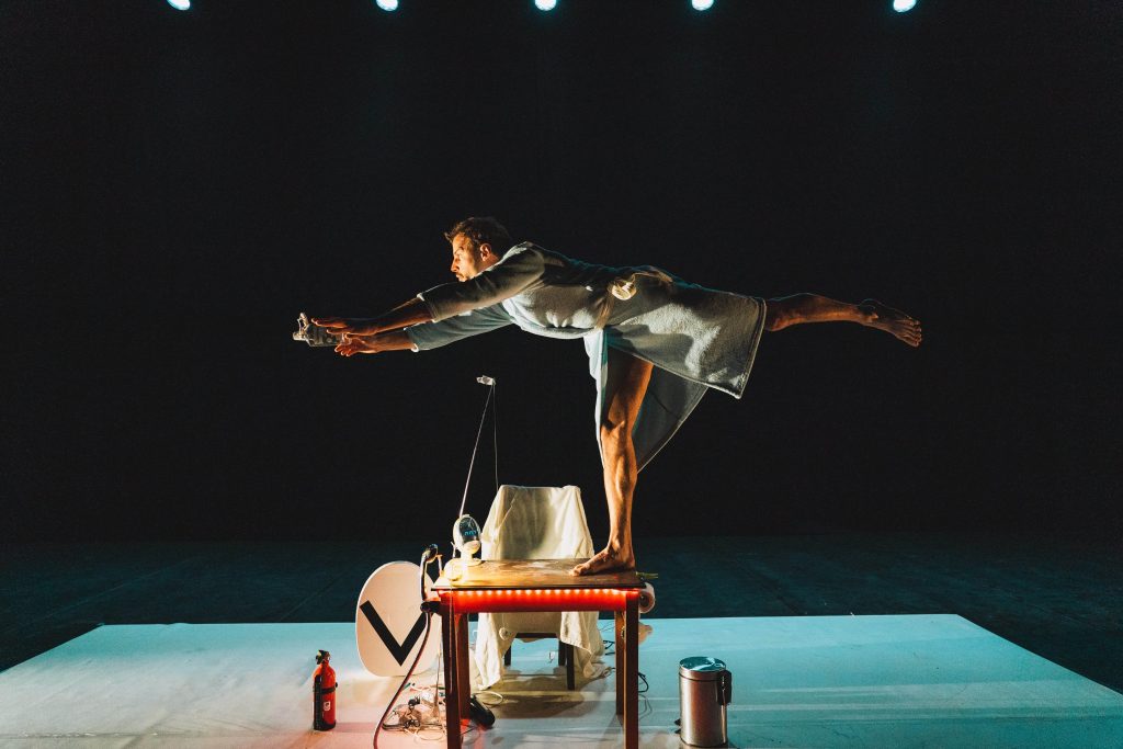 Vademecum. Ciencia ficción en un baño y teatro de objetos… de higiene. La rutina matutina de un hombre se transforma repentinamente en una fantasía intergaláctica. Un montaje que conecta lo infinitamente pequeño del baño con lo infinitamente grande del Universo, en una explosión de creatividad y reutilización de objetos cotidianos.