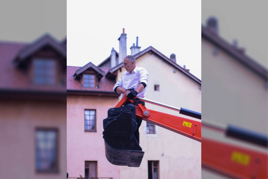 Transporte excepcional es un encuentro entre el hierro y la carne, una danza llena de poesía donde un bailarín y una excavadora se funden a dúo en un espectacular juego poético que podría recordar a la oda amorosa de Romeo y Julieta, al sueño vertiginoso de la Bella y la Bestia, a la elegancia y fuerza de Hércules o al mundo industrial interpretado por el pintor Fernand Léger. Un regalo inesperado, un beau geste…