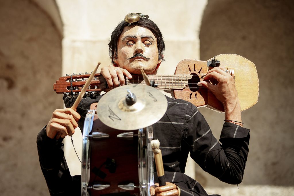Míster Barti. La vida brota de las habilidosas manos de Alex y de su marioneta Míster Barti, movida con decenas de hilos, en un concierto delirante de guitarra y piano. Ternura extrema.